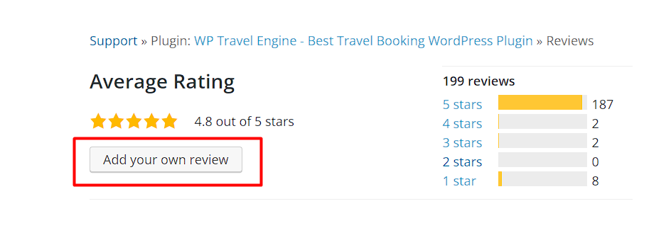 Reviews are crucial for both developers and potential users. To leave a review for a WP Travel Engine plugin on WordPress.org, you must have an account.