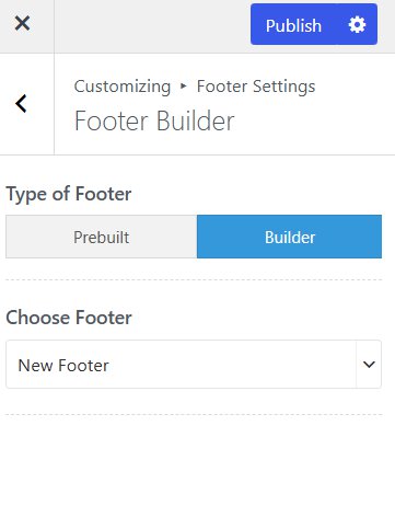Once you’re done designing, the custom footer will automatically apply if you’ve selected “Builder” as the layout option in the Customizer Settings: