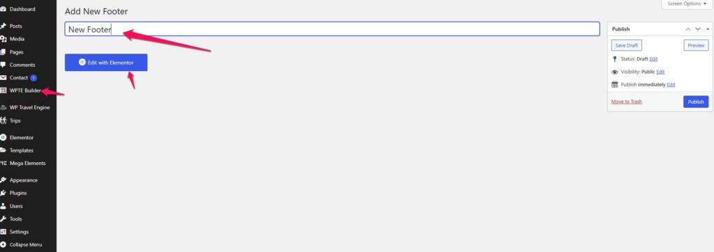 - Navigate to WPTE Builder > Footer Builder