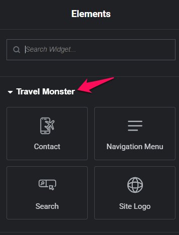 Travel Monster provides 4 custom Elementor widgets for building headers: