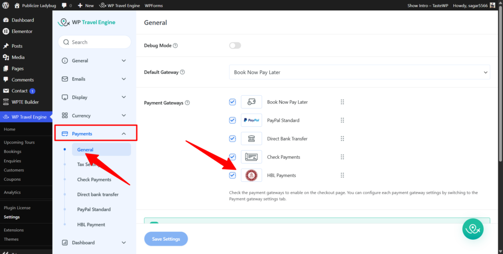 - Go to WP Travel Engine > Settings > Payments > HBL Payment.