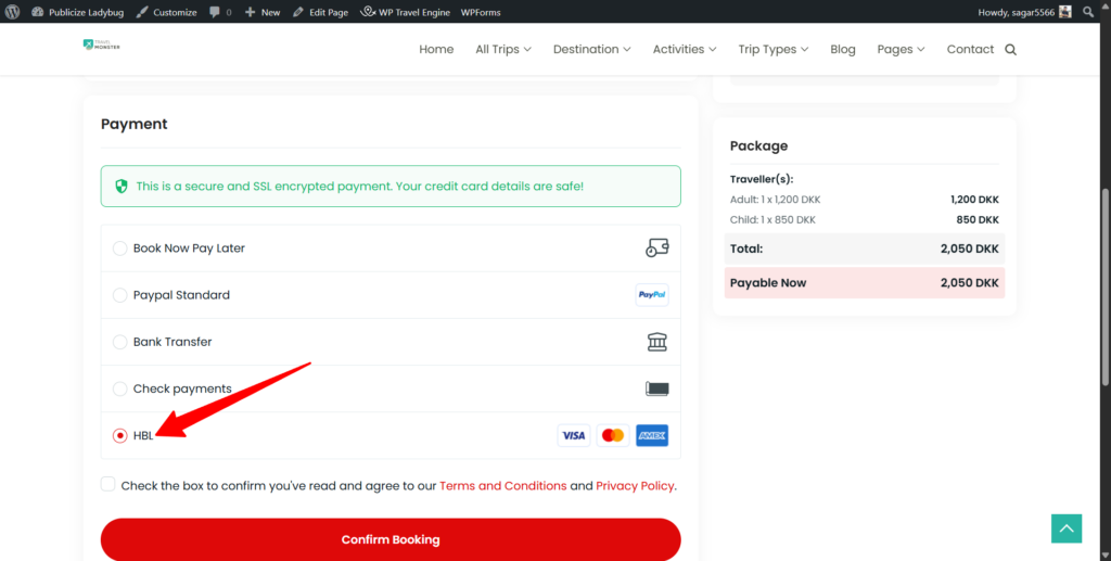 In the Checkout Page, the traveler has an option to choose the Himalayan Bank Payment Gateway as a Payment option.