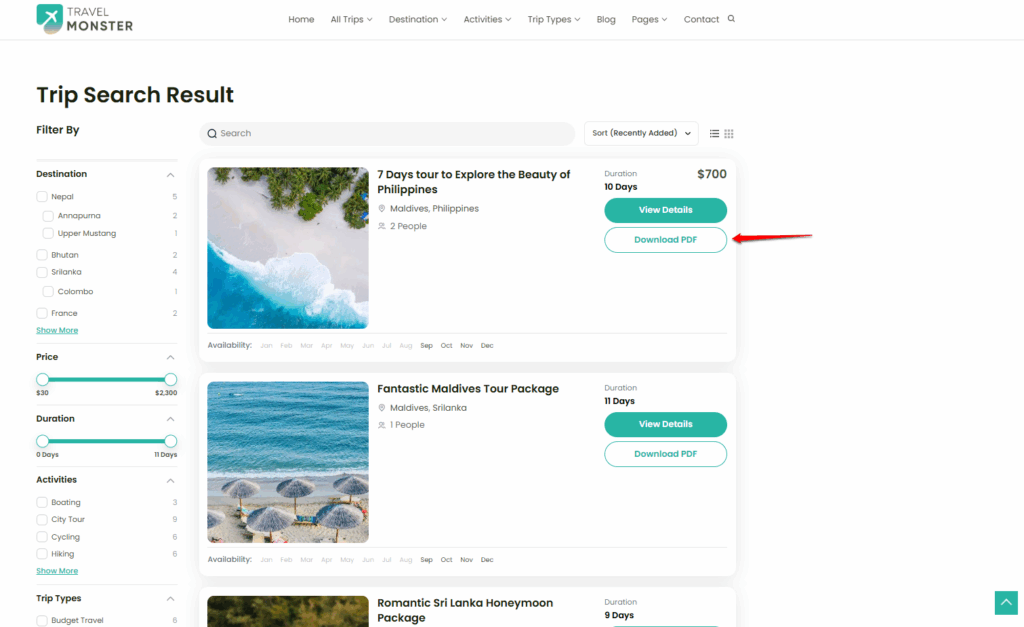You can enable the Itinerary Downloader button on the Trip Search / Archive Page to allow users to directly download the trip itinerary PDF from the archive listing, without needing to open the individual trip page.
