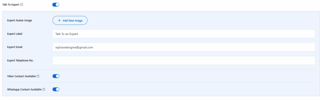 Once you enable the Talk to Expert toggle, you will find the settings below. This section adds a “Talk to an Expert” block inside the PDF to build trust and encourage direct contact.