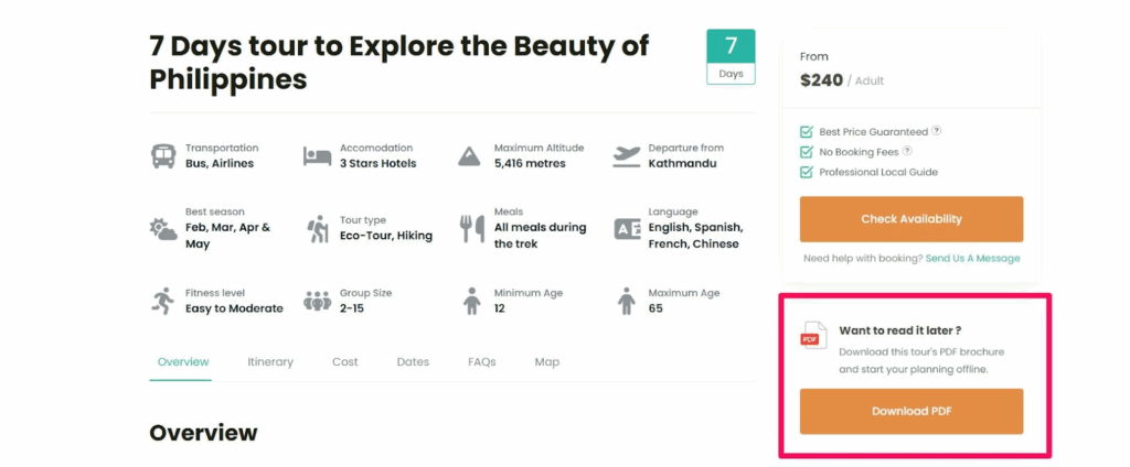 - Easy access for travellers: Visitors can download itineraries instantly in a PDF format.