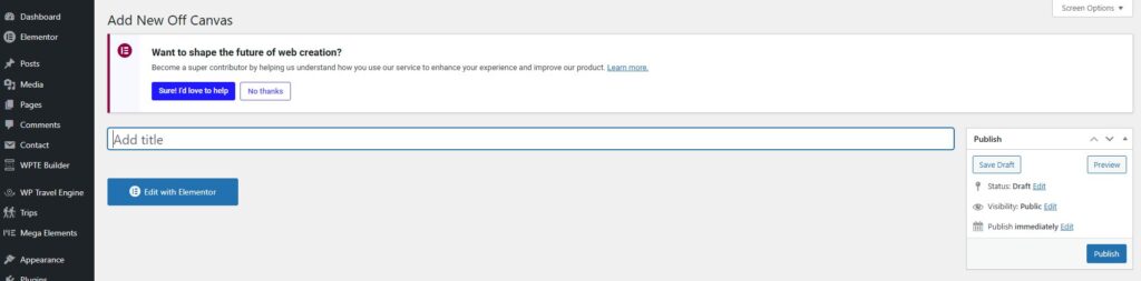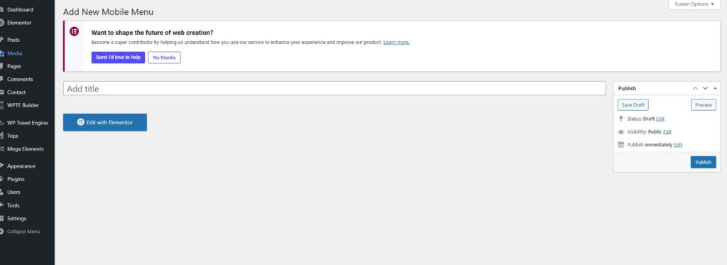 - This will launch the Elementor editor, where you can start designing your mobile menu using drag-and-drop widgets.