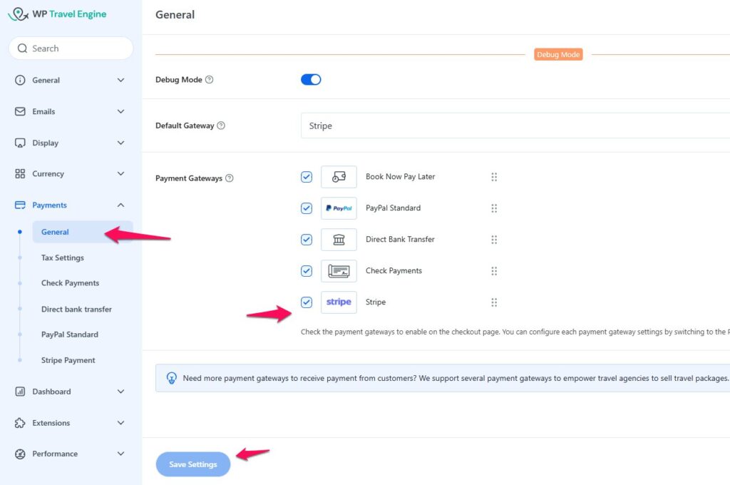 - Navigate to WP Travel Engine > Settings > Payment > General.
