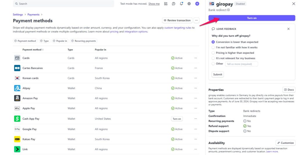 - Steps to Enable Stripe Payment Methods: