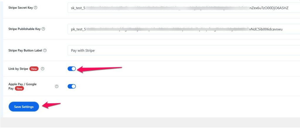 To connect your site with your Stripe account, you need to enter your API Keys: