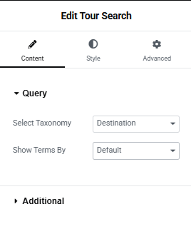 Once the plugin is activated, you can add and customize the Tour Search Widget using the Elementor page builder.