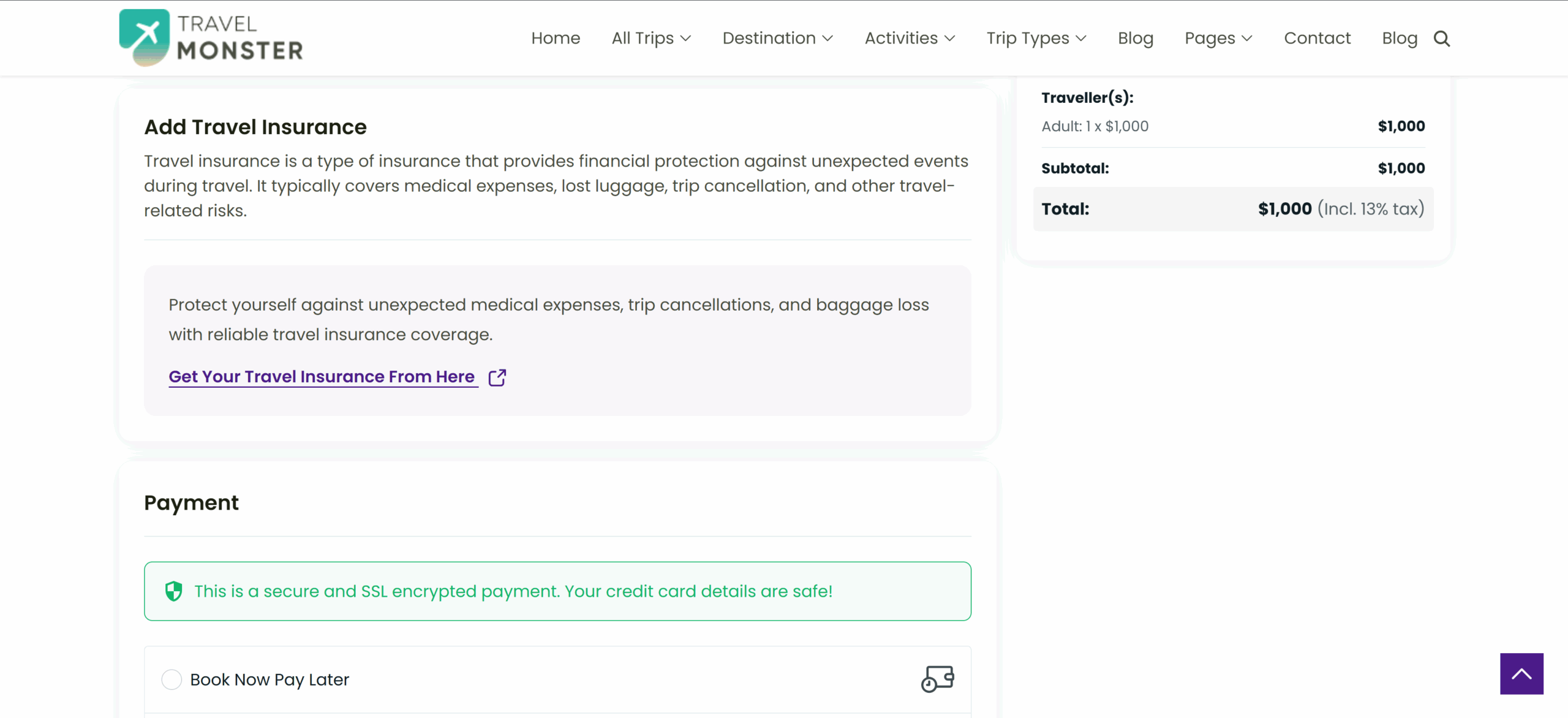 - Section Title: Add a clear and concise title for the Travel Insurance section, such as “Add Travel Insurance” or “Protect Your Trip”.