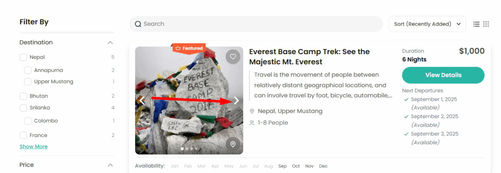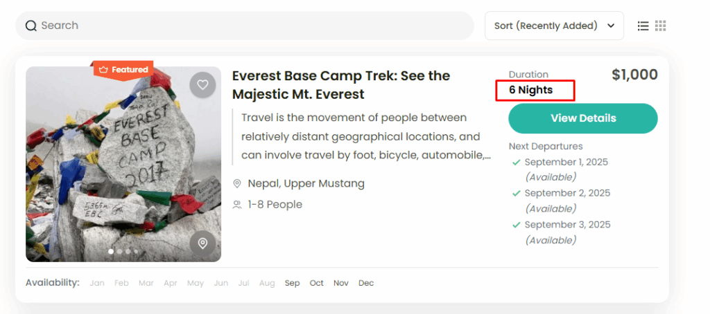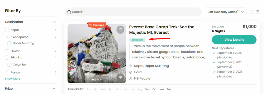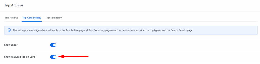 - Enable this option: A “Featured” tag will be displayed on trips that are marked as featured.