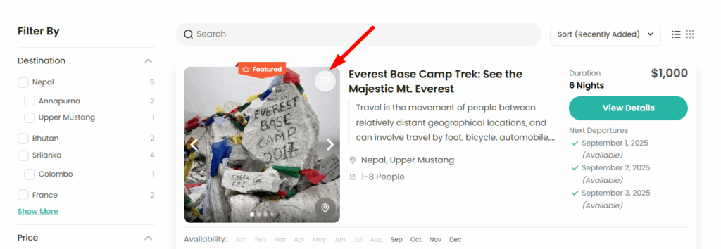 - Enable this option: A Wishlist icon will appear on the trip card, allowing users to save trips they are interested in.