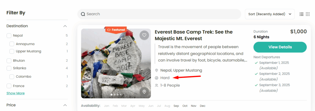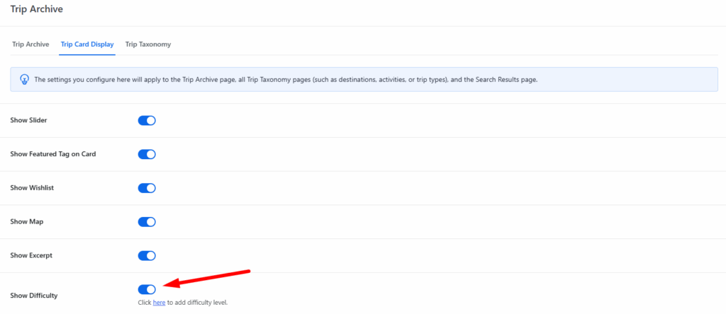 - Enable this option: The difficulty level of the trip will be displayed on the trip card (e.g., Easy, Extreme, Hard).