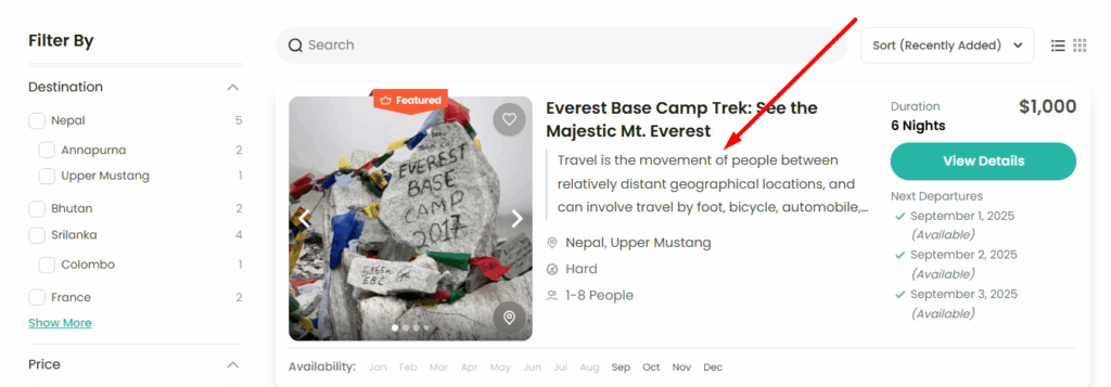 WP Travel Engine provides various settings for configuring the display of the Trip Card/Listing page.