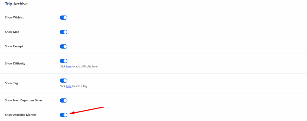 - Enable this option: Available months for booking will be displayed on the trip card.