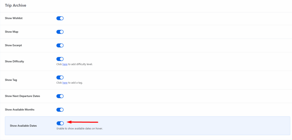 - Enable this option: Specific available dates for the trip will be shown on the card.