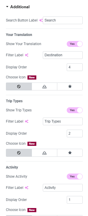 - Customize the text displayed on the search button to match your site’s tone (e.g., “Find Trips,” “Search Now,” etc.).