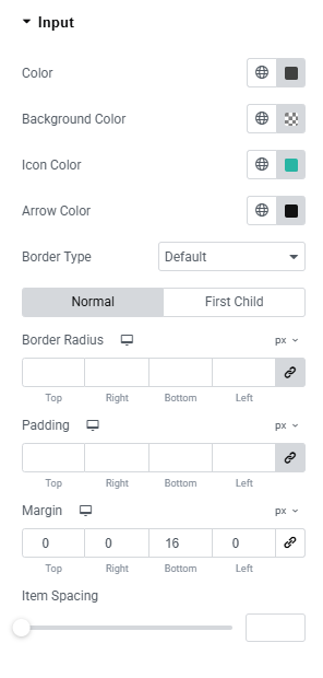 - Input Color: Set the color of input text or fields.