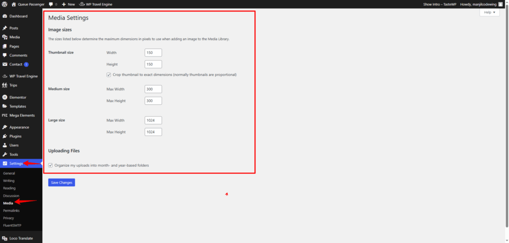 Another possible cause of the issue might be the values for Image Sizes under Media Settings being set to zero. To rectify this, adjust the values as per the screenshot: